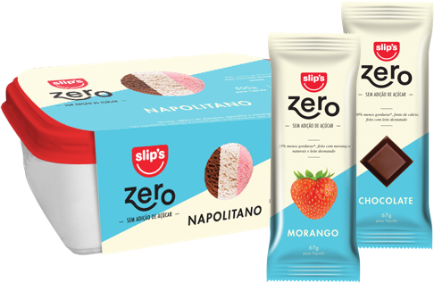 Cuidar da saúde e do bem-estar é uma delícia na nossa linha Zero, perfeita para quem tem restrições de açúcar ou simplesmente prefere assim. Com as frutas sem aroma, leite desnatado e o chocolate mais amargo, a linha foi criada para manter o sabor do sorvete tradicional, só que com 30% a menos de gordura.