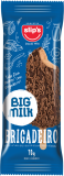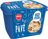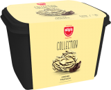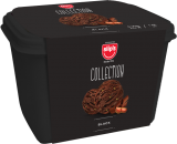 Sorvete de chocolate, mesclado com chocolate ao leite e amendoim torrado granulado.