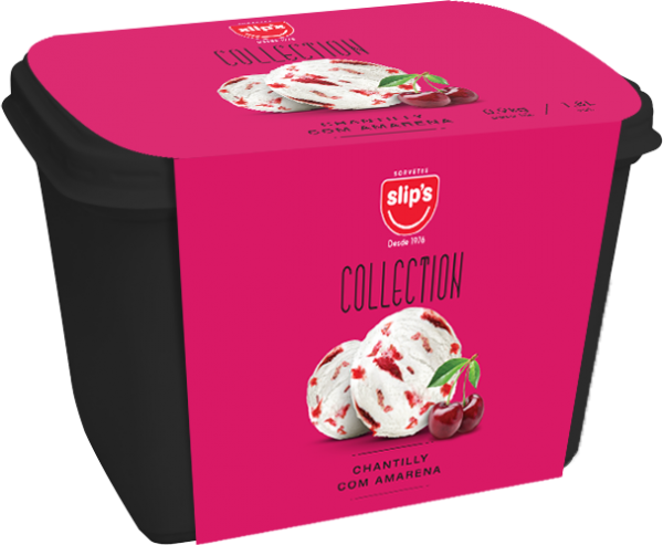 Sorvete sabor de chantilly, mesclado com preparado de cerejas, aromatizado artificialmente.