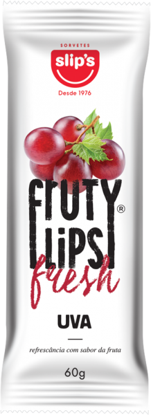 Picolé sabor de uva, colorido e aromatizado artificialmente.