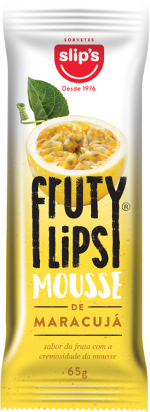 Picolé tipo mousse de maracujá, colorido artificialmente.
