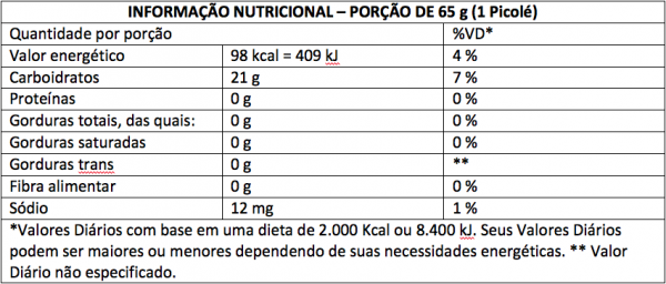 Água, polpa de cajá, açúcar cristal, xarope de glicose de milho, espessantes goma guar (INS 412) e carboximetilcelulose de sódio (INS 466), emulsificantes mono e diglicerídeos de ácidos graxos comestíveis (INS 471) e éster de ácidos graxos. NÃO CONTÉM LACTOSE. NÃO CONTÉM GLÚTEN.