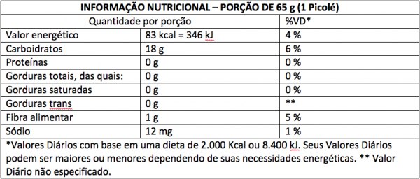 Água, polpa de graviola, açúcar cristal, xarope de glicose de milho, espessantes goma guar (INS 412) e carboximetilcelulose de sódio (INS 466), emulsificantes mono e diglicerídeos de ácidos graxos comestíveis (INS 471) e éster de ácidos graxos. NÃO CONTÉM LACTOSE. NÃO CONTÉM GLÚTEN.